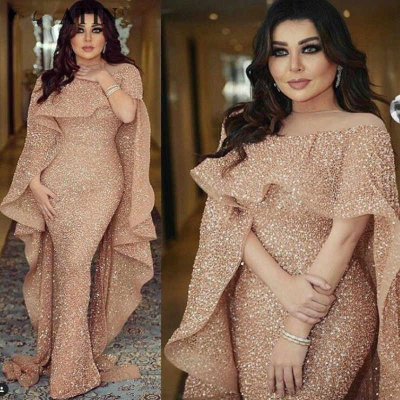 Evening Dress Long 2019 Mermaid Sparkly Glitter Sequin Rose Gold Dubai Saudi Arabic Formal Prom Party Gown,88