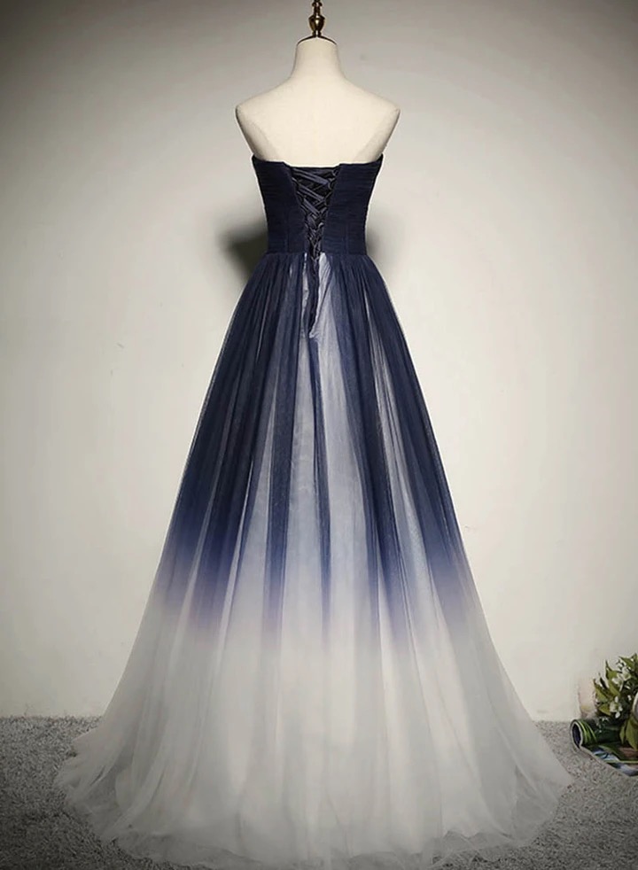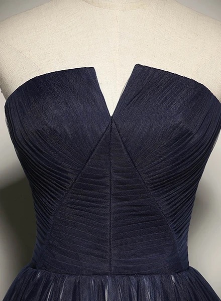 Navy Blue Tulle Strapless Long Prom Dress, Evening Dress,454