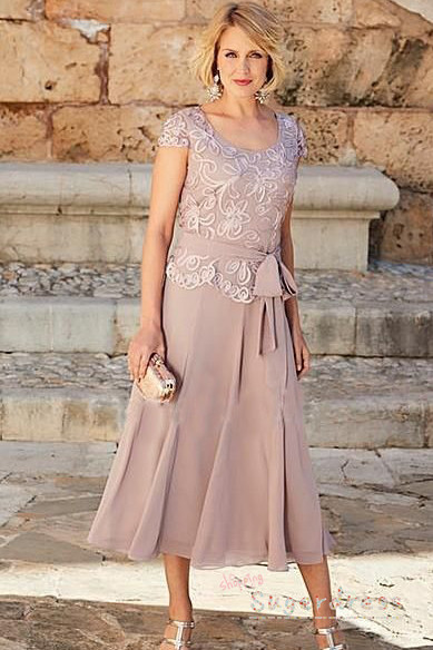Scoop Lace Appliques Mother of the Bride Dress with Ribbon,1046