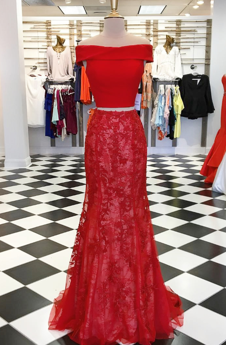 2 piece long prom dress, white mermaid long prom dress, 2021 prom dress, off the shoulder prom dress,1118