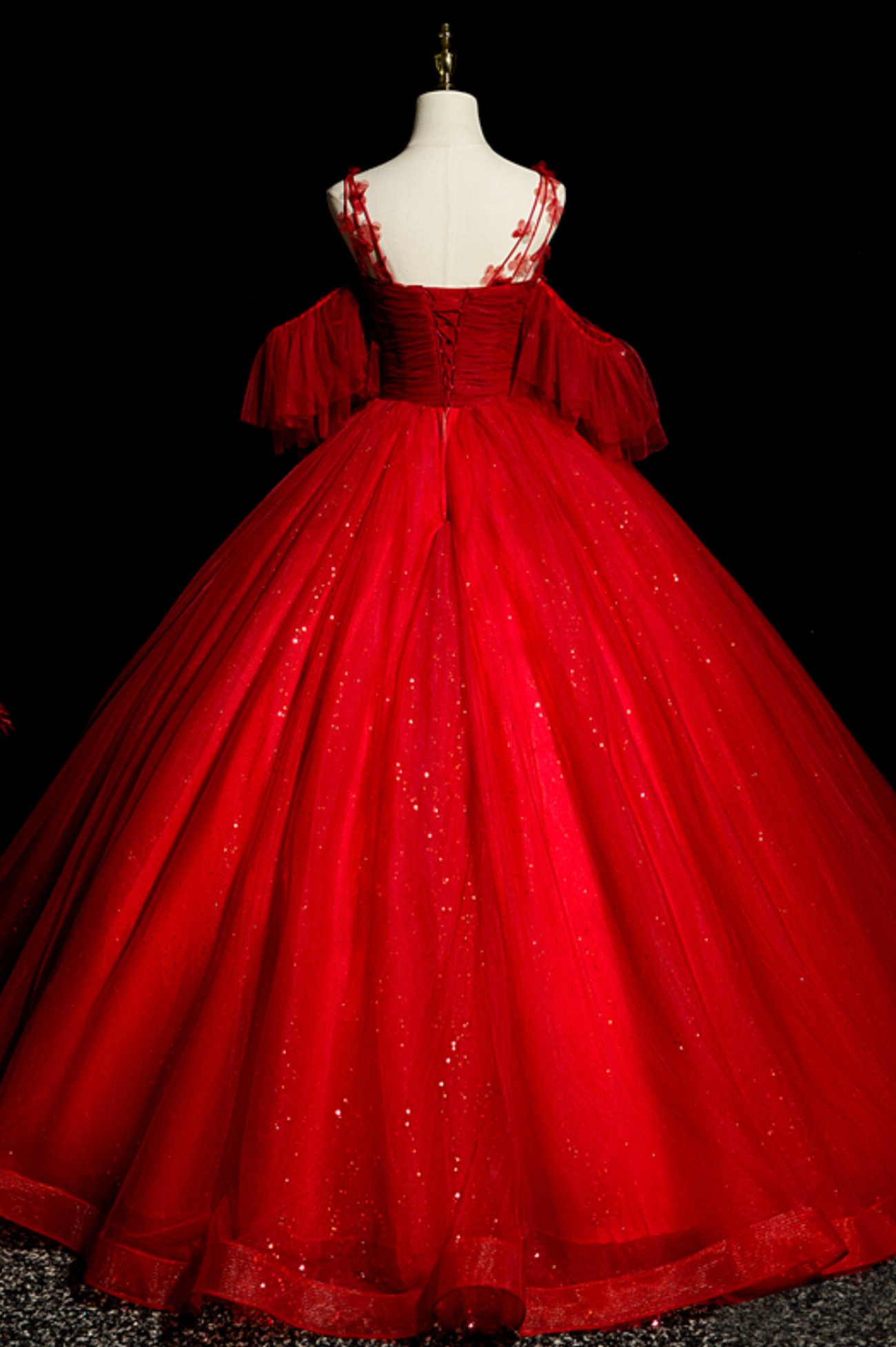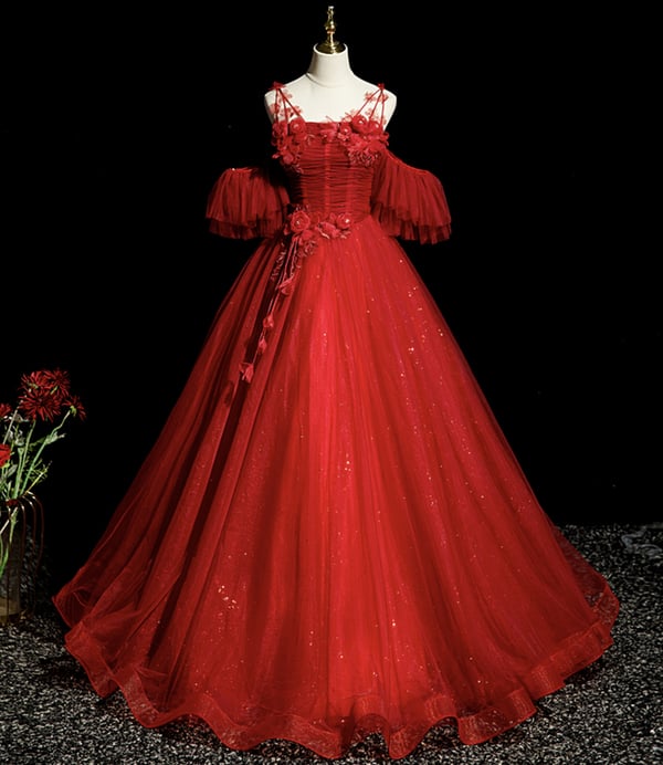 Red Tulle Long A-line Ball Gown Formal Gown,1676