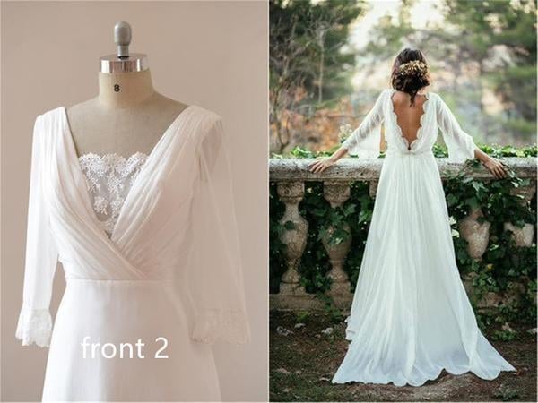 Chiffon Elegant Sexy Long Sleeves and Flirty Back Wedding Dress,13
