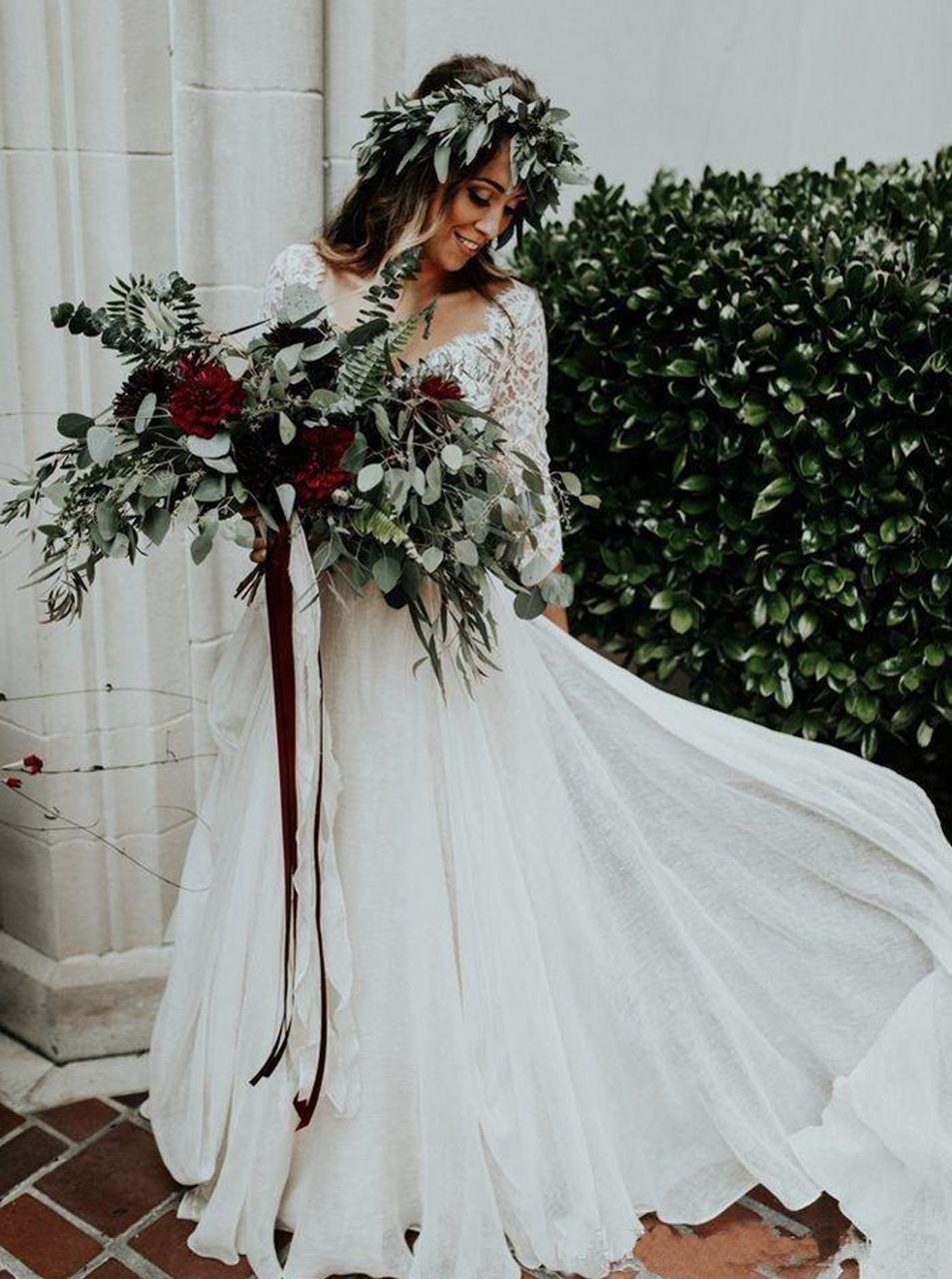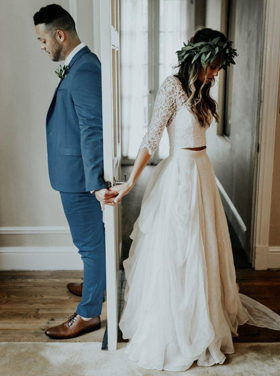 Two Piece Wedding Dress with Sleeves,Long OutDoor Wedding Dress,16