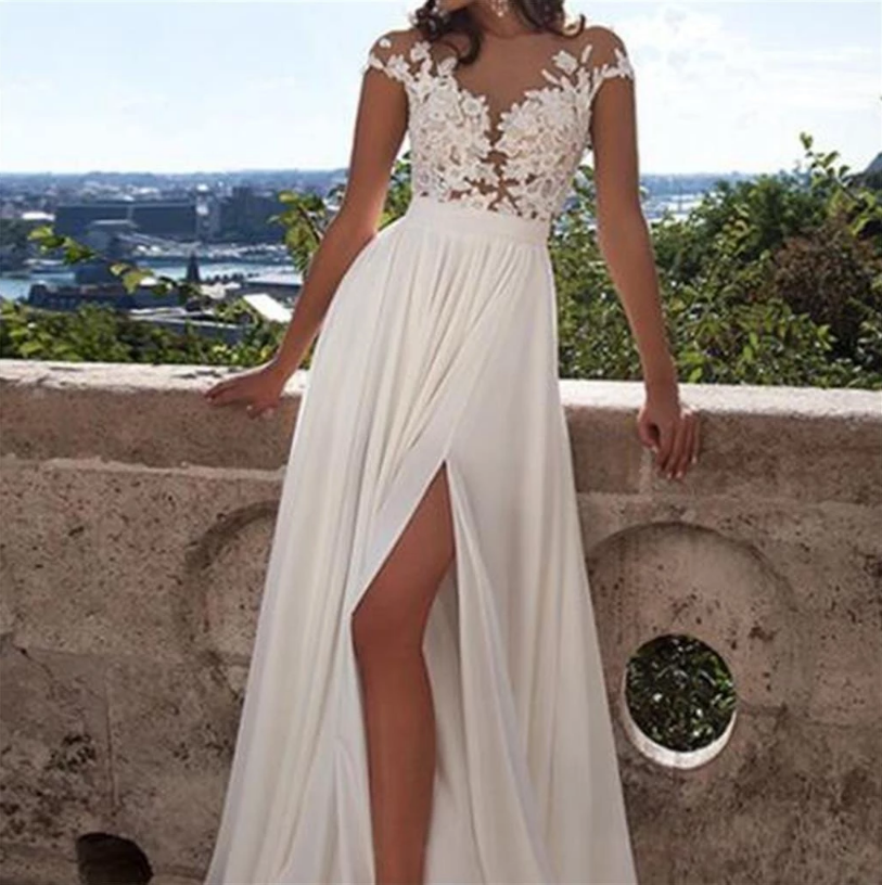 2020 Long Top lace Appliques Side Slit Chiffon Cheap Party Evening Prom Dresses,48