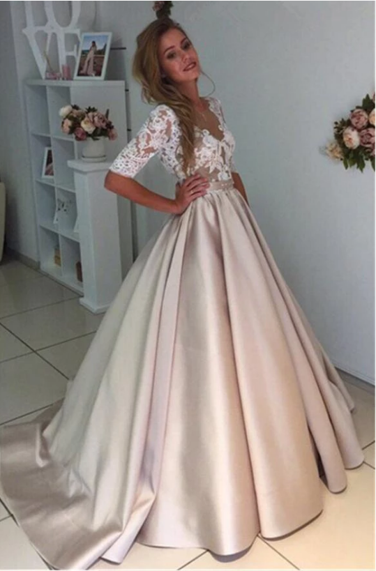 2019 Charming New Arrival Half Sleeves Lace Top Soft Beautiful Simple Wedding Dress,58