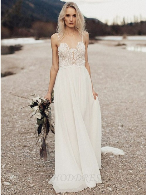 A-Line Spaghetti Straps Long Chiffon Wedding Dress with Lace,267