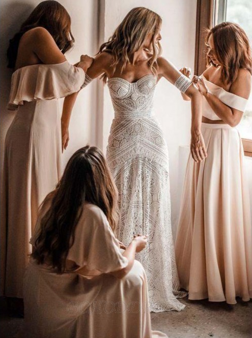 Mermaid Sweetheart Sweep Train Ivory Lace Boho Wedding Dress,268