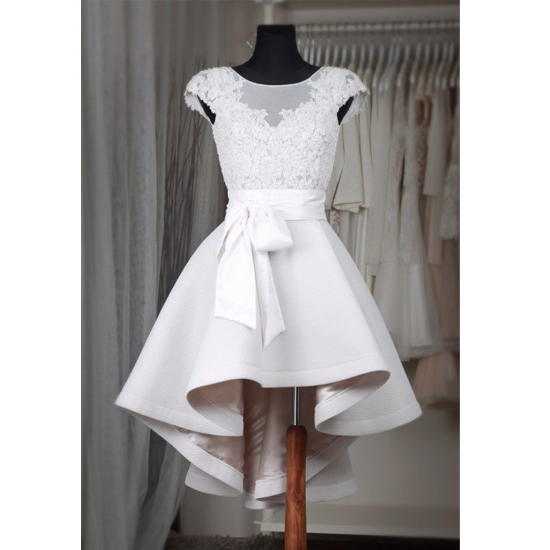 Cap sleeve lace prom dresses, hi-low homecoming dresses, wedding party dresses, cheap homecoming dresses, cocktail dress,323