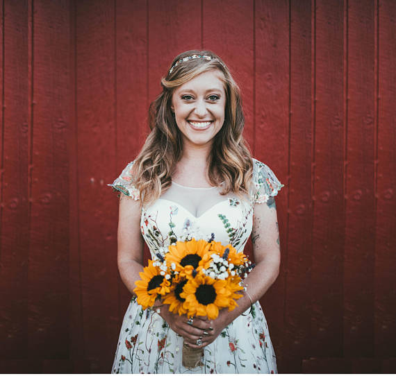 Flower wedding dress in white, Floral wedding dress with sleeves, White Bridal gown, White wedding gown, Tulle wedding dress long,437