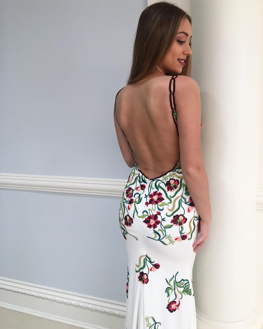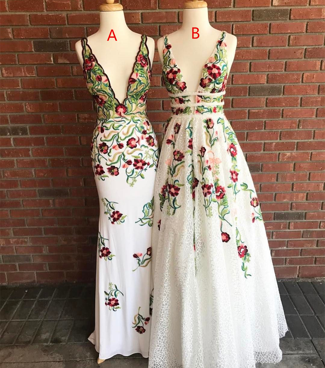 White Long Prom Dress Formal Dress with Floral,Backless Bridal Gowns,Floral Wedding Dresses,793