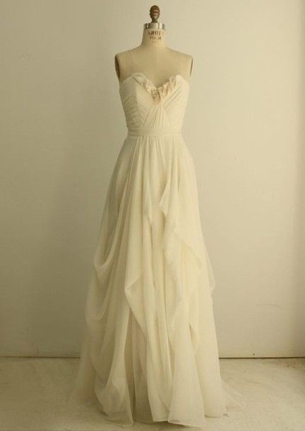 White Chiffon A-Line Beach Wedding Dresses with Ruffled Skirt,1304