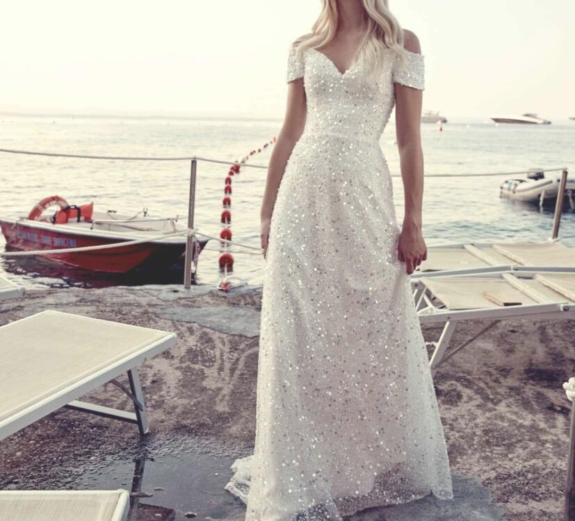 Sparkly Plus Size Wedding Dress Bridal Gown Off the Shoulder,1369