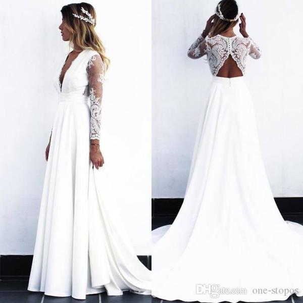 New Lace Wedding Dresses A Line Long Sleeve Boho Bridal gown Beach V Neck Plus Size Wedding Gow Custom Made,1455