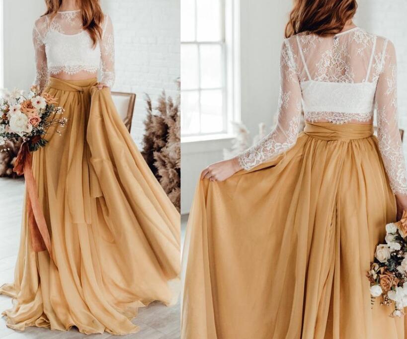 2 Pieces Lace Top Tulle Wedding Dresses, Boho Wedding Dresses, Long Wedding Dresses, Popular Wedding Dresses,1484