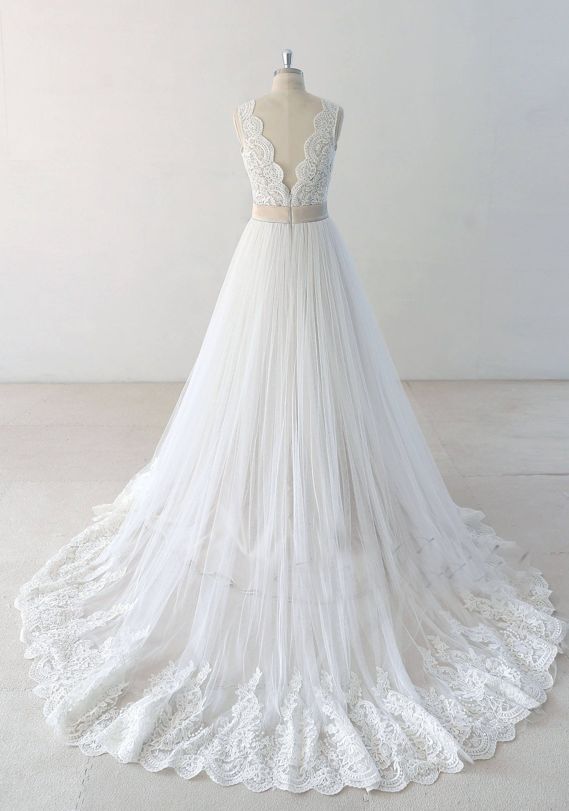 Boho wedding dresses, beach wedding dresses, simple wedding gowns, modest wedding dresses,1526