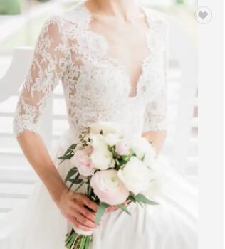 Simple Sheer Back Sweep Train Half Sleeve V-Neck Lace Beach Bohemian A-Line Chiffon Wedding Dress Bridal Gowns,1537
