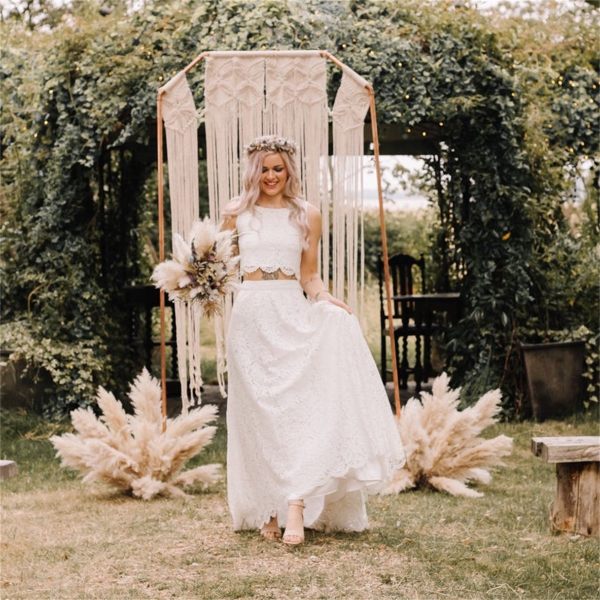 Two Pieces Bohemian Wedding Dresses A Line Appliques Lace Beach Bridal Gowns,1568