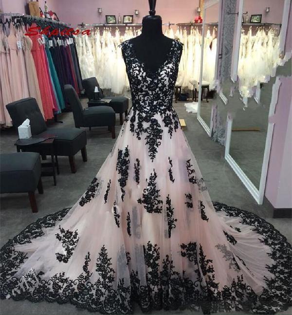 Sexy Black Lace Appliques Wedding Dresses Deep V neck Backless Tulle Ruched Court Train Real Photo Wedding Reception Dress Bridal Gowns,1609