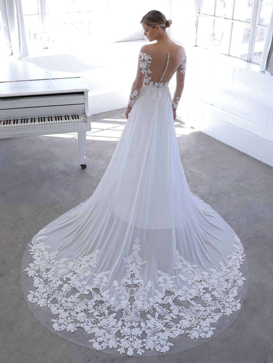 Elegant A Line Lace Long Sleeves Wedding Dresses Deep V Neck Appliqued Bridal Gowns,1690