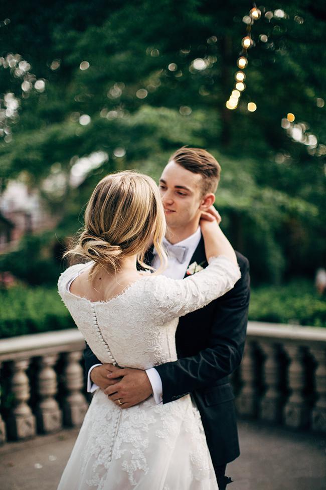 New Chic A-line Modest Wedding Dresses With Half Sleeves Buttons Back Lace Appliques Tulle Short Train Country Western Bridal Gowns,1705