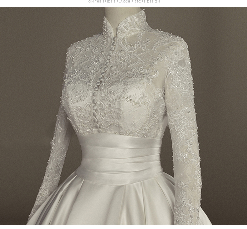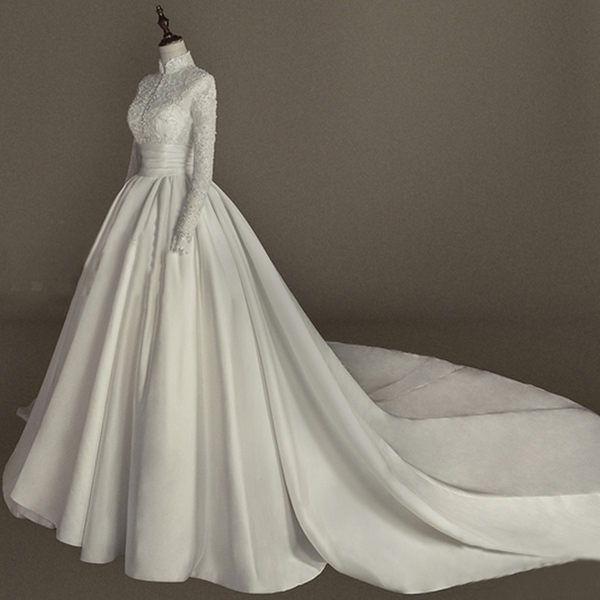 Long Sleeve Muslim Wedding Dresses with High Colar,1721