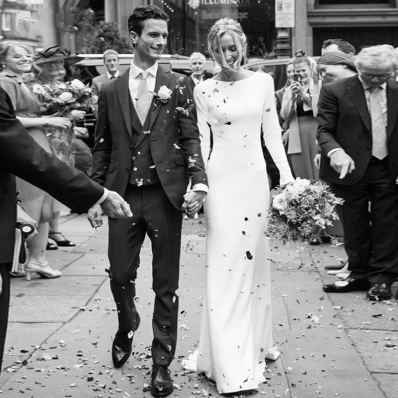 Casual Dresses Elegant Simple Long Sleeve Satin For Wedding Party O-Neck Open Back Mermaid Bridal Gowns,1739