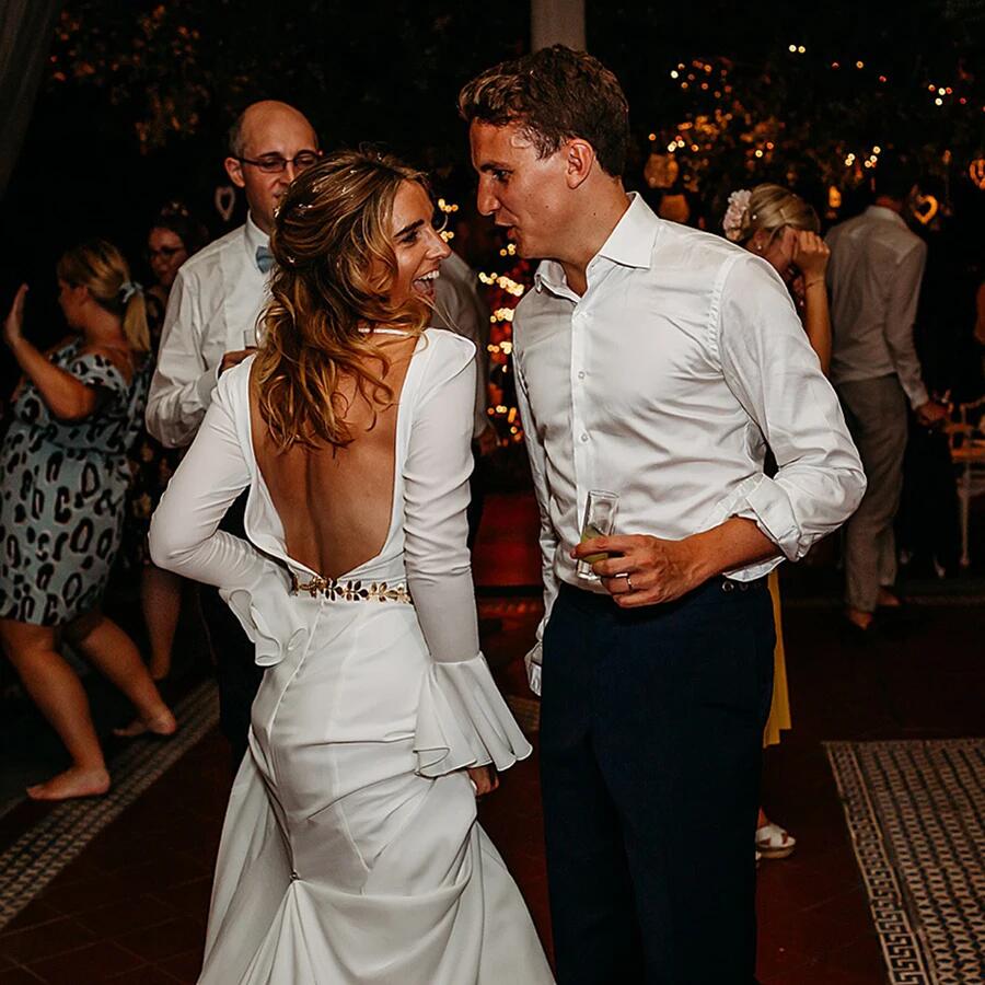 Long Flare Sleeves Chiffon Simple Wedding Bride Dress Zipper Custom Made Open Back Backless Mermaid V-Neck Soft Bridal Gowns,1742