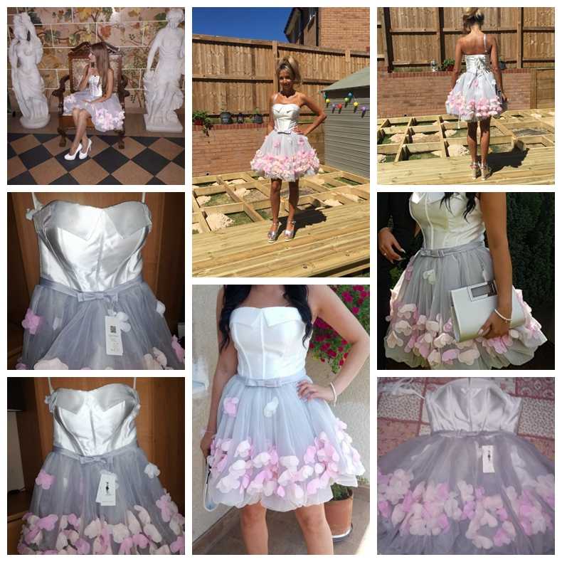 2019 Short Prom Dresses Graduation Strapless Gray White Flowers Real Photos Evening Organza Party Formal Gown,73