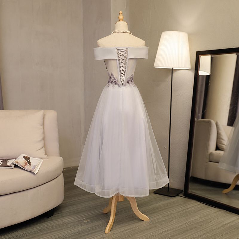 Gray A line off shoulder short prom dress, homecoming dress, of girl dresses,104