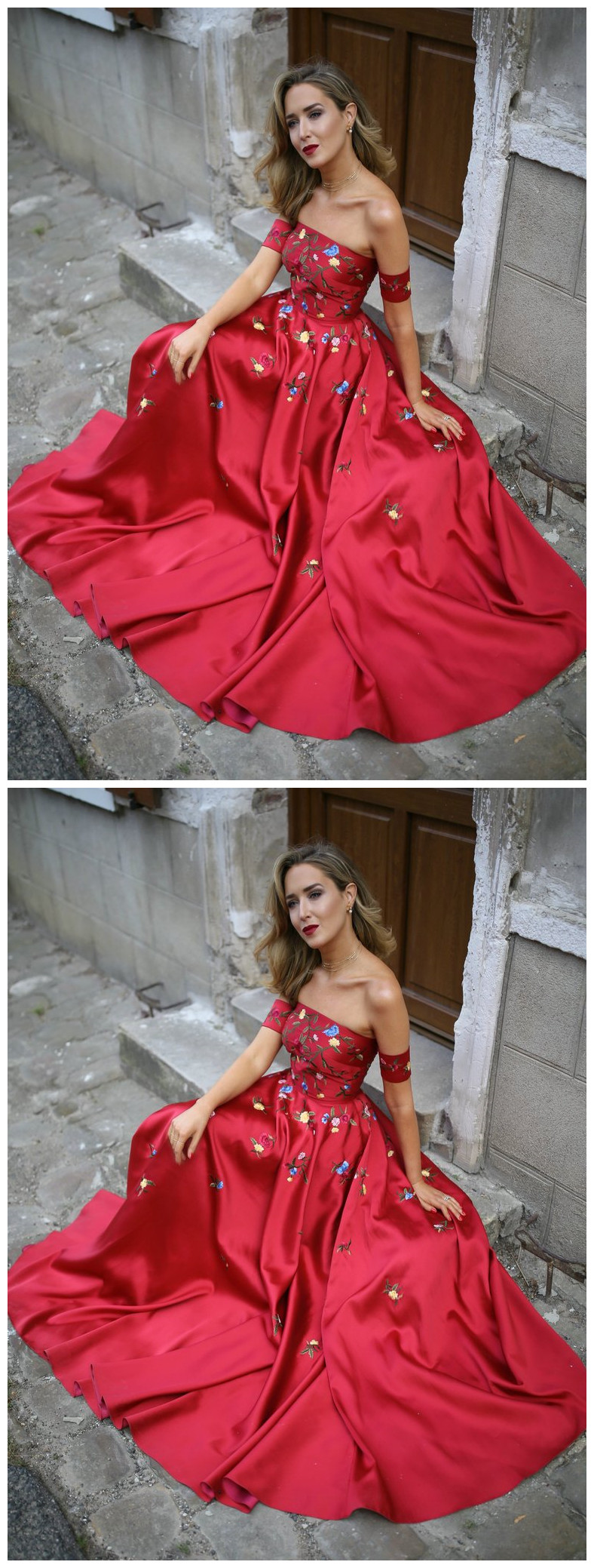 Fabulous A-Line Off Shoulder Satin Long Prom Dresses,33