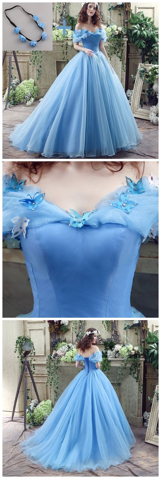 Blue Princess Off Shoulder A-line Long Evening Prom Dresses, Cheap Sweet 16 Dresses,69
