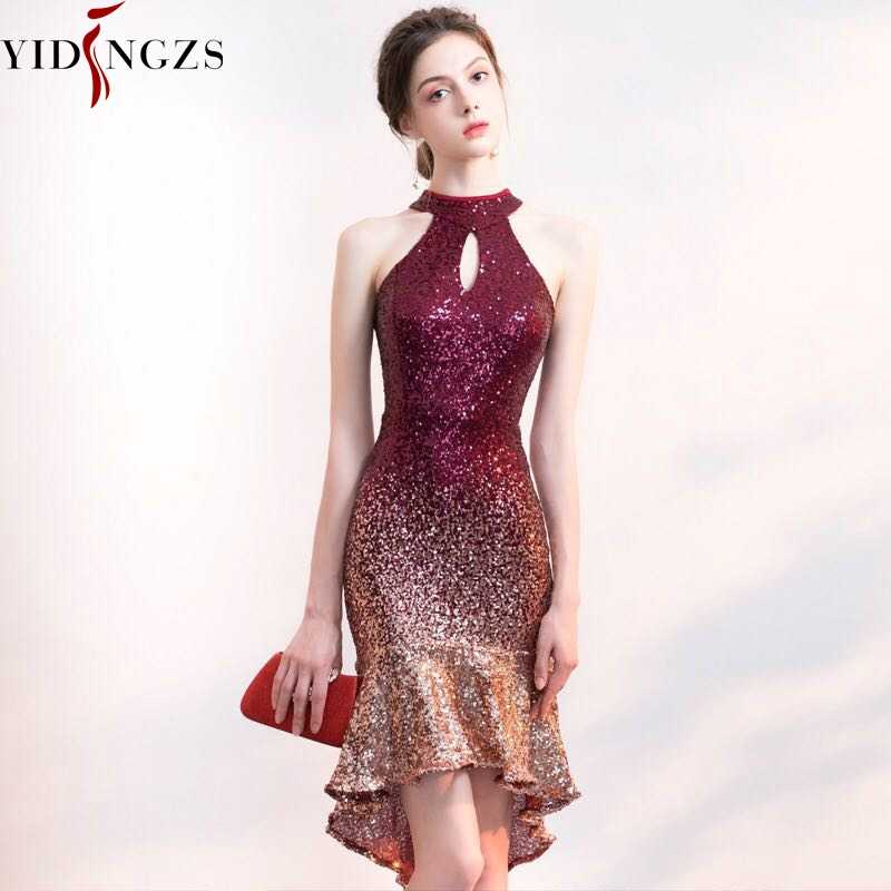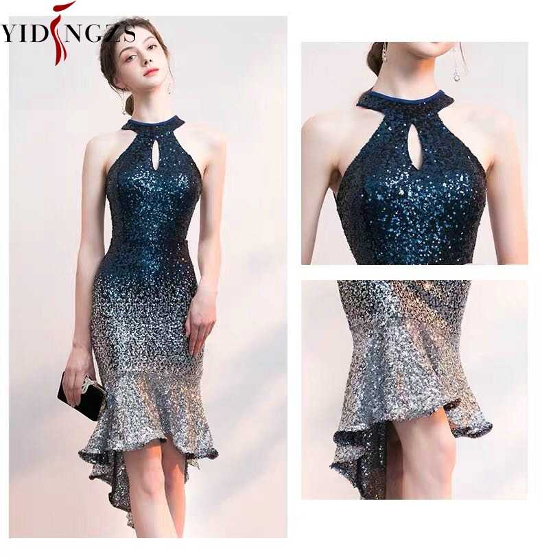 New Women Halter Elegant Sequin Prom Dress Short Front Long Back Sparkle Party Dress,76
