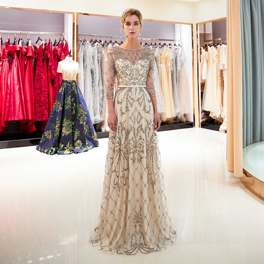 2019 Half Sleeve Evening Dresses for Women Luxury Heavy Beaded Long Formal Evening Party Dresses With Stones,82