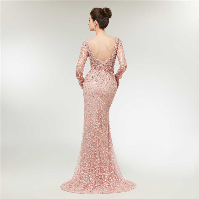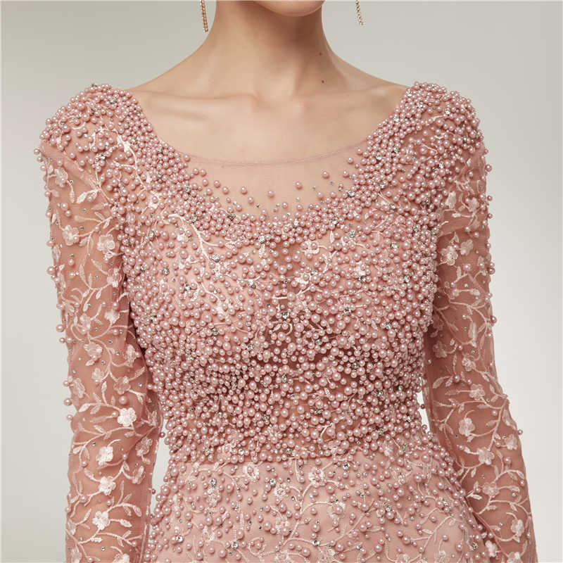 uxury Evening Dresses Lace 2019 Mermaid Long Sleeves Pearls Crystals Pink Women Formal Party Gown Prom Dress,85