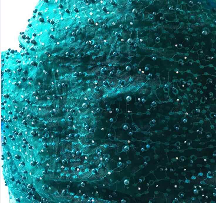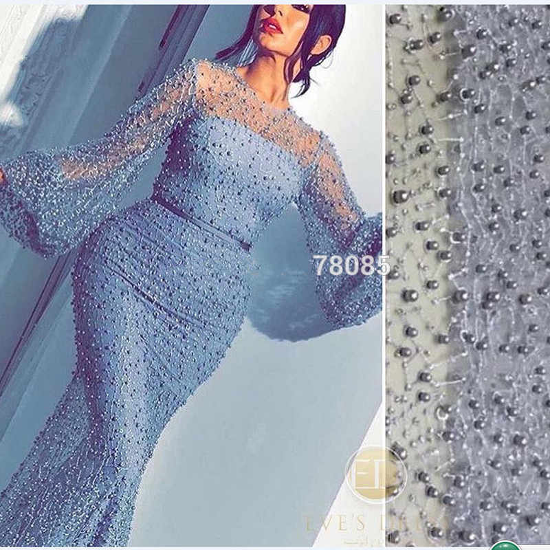 Blue Evening Dresses Long Sleeves Mermaid Lace Pearls Sexy Women Arabic Formal Party Prom Gown,87
