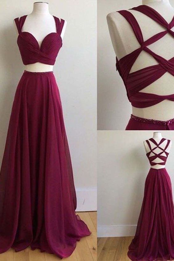 Two Piece Long Prom Dress, 2017 Burgundy Long Prom Dress, Formal Evening Dress,118