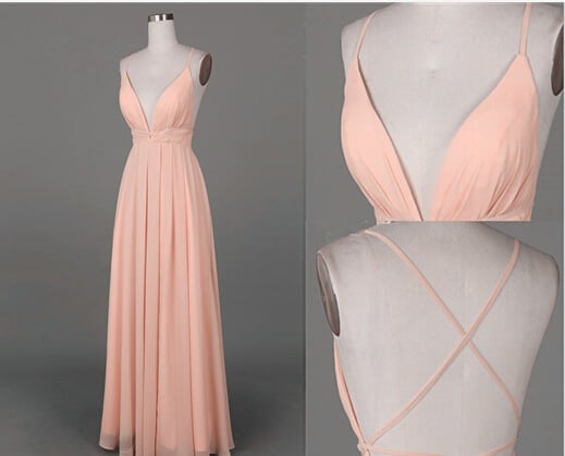 Simple A-line V-neck Long Prom Dress with Criss Cross Back,123