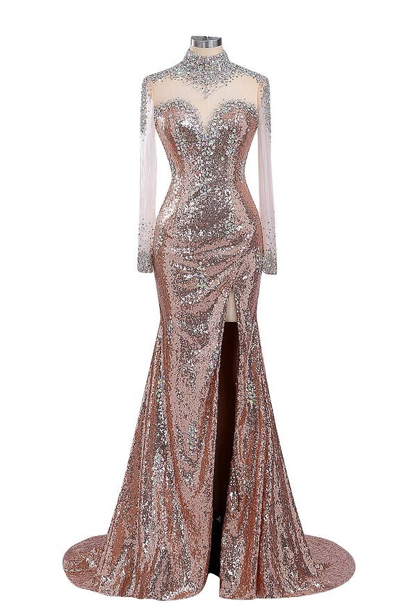 Long Prom Dresses, Sequin Prom Dresses, Mermaid Party Prom Dresses, Side Split Prom Dresses, Rhinestone Prom Dresses,156