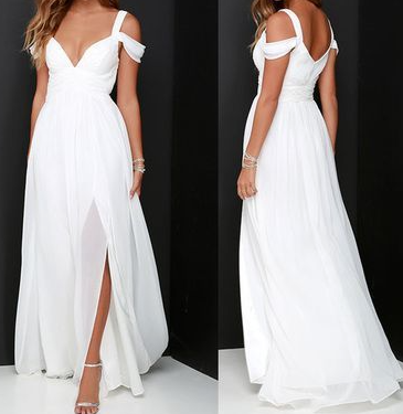 White Chiffon Summer Beach Boho Wedding Dresses Cheap A Line Off the Shoulder Bridal Gowns Side Split Long Wedding Gowns,221