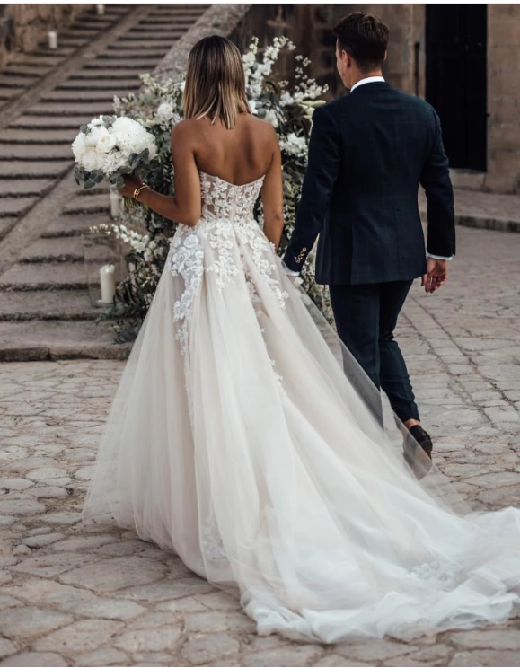 Ball Gown Tulle ivory Boho Wedding Dresses Sweetheart Appliques Bridal Gowns,244