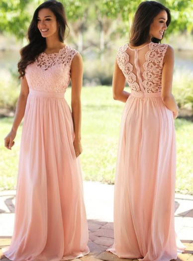A-Line/Princess Scoop Sleeveless Applique Floor-Length Chiffon Dresses,252