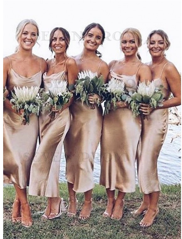 Simple Tight Scoop Sleeveless Blush Tea-Length Bridesmaid Dress,275