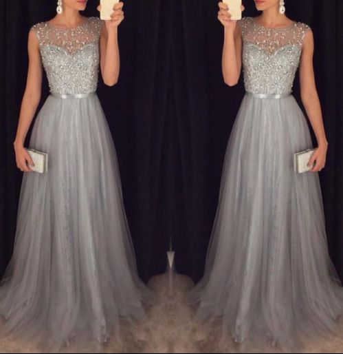 2019 New Arrival Cap Sleeves Beading Prom Dresses,Charming Gray Evening Dresses,A-line Modest Prom Gowns,Long Prom Gowns,305
