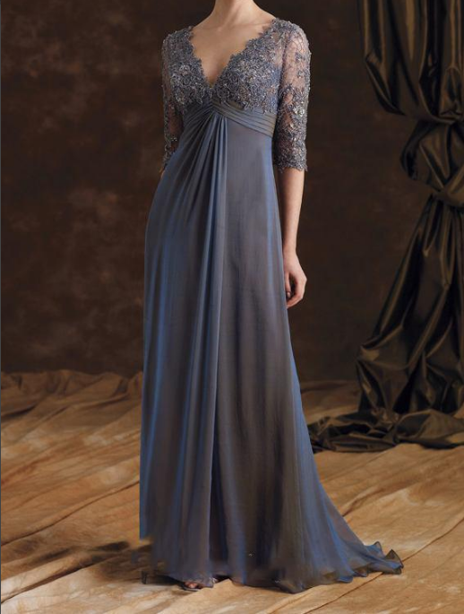 Sexy V Neck Grey Lace Long Mother Of The Bride Dresses, 2020 Half Sleeve A Line Chiffon Brides Mother Dresses, Plus Size Mother Of The Groom Dress,341