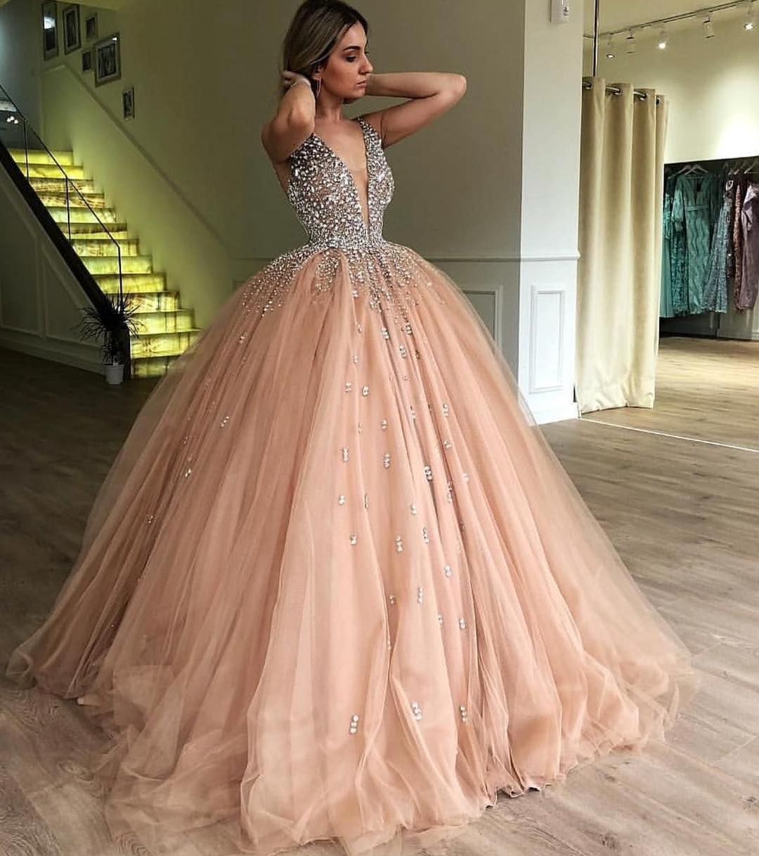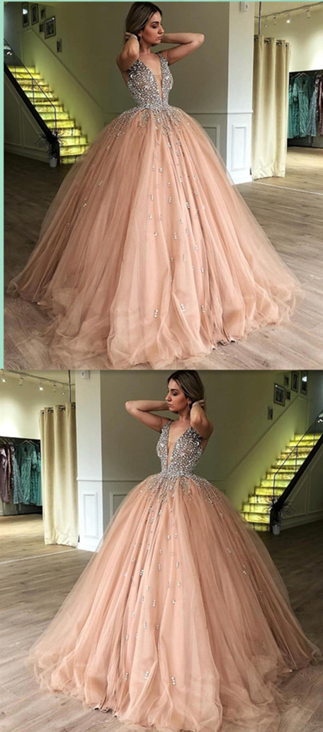 Ball Gown Sweet 16 Prom Dress,V-Neck Evening Dress,Quinceanera Dress,Prom Dress,433