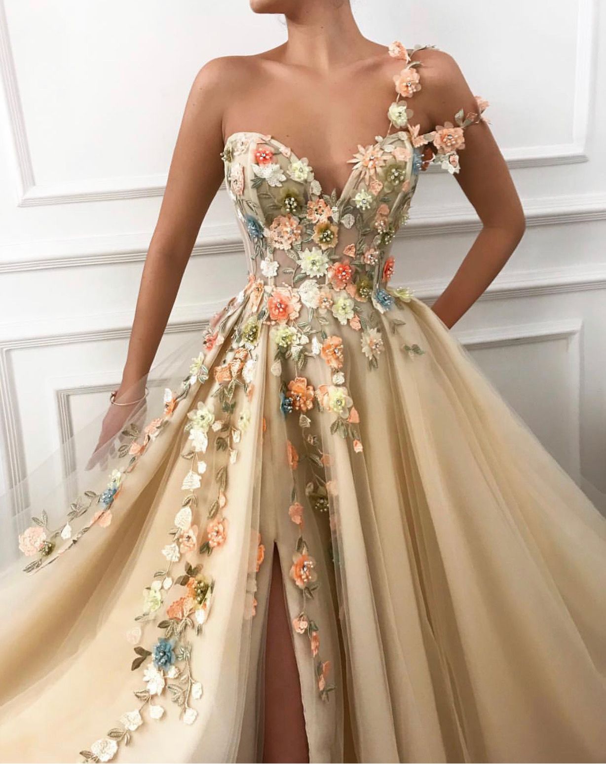 Luxury Floral A-Line Prom Dress,A-Line Sweetheart Evening Dress,Prom Party Dress with Side Slit,462
