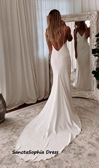 Sexy Backless Wedding Dress,Satin Prom Dresses,White Wedding Dresses,525