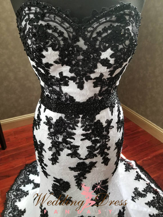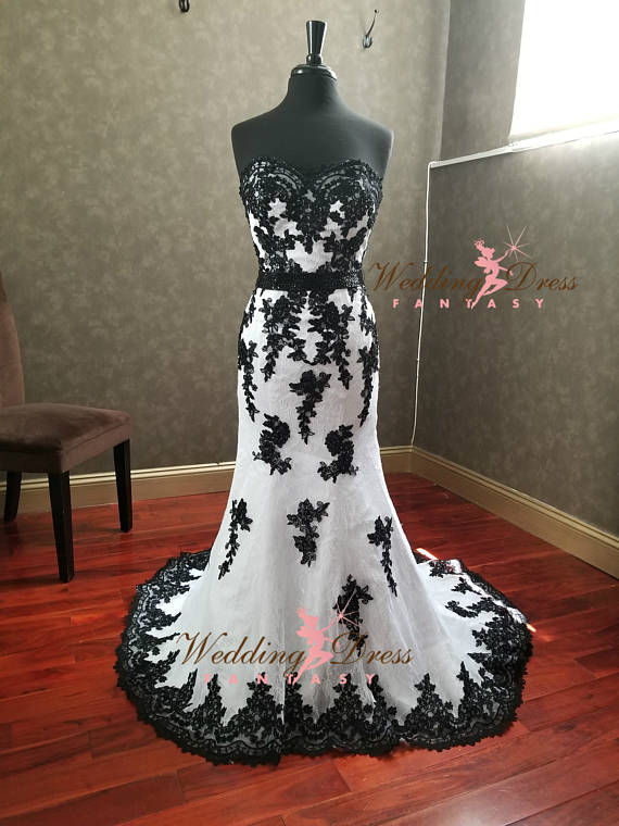 Stunning Black and White Gothic Wedding Dress with Sweetheart Neckline, Unique Wedding Dress, Alternative Bridal Gown with Corset,555