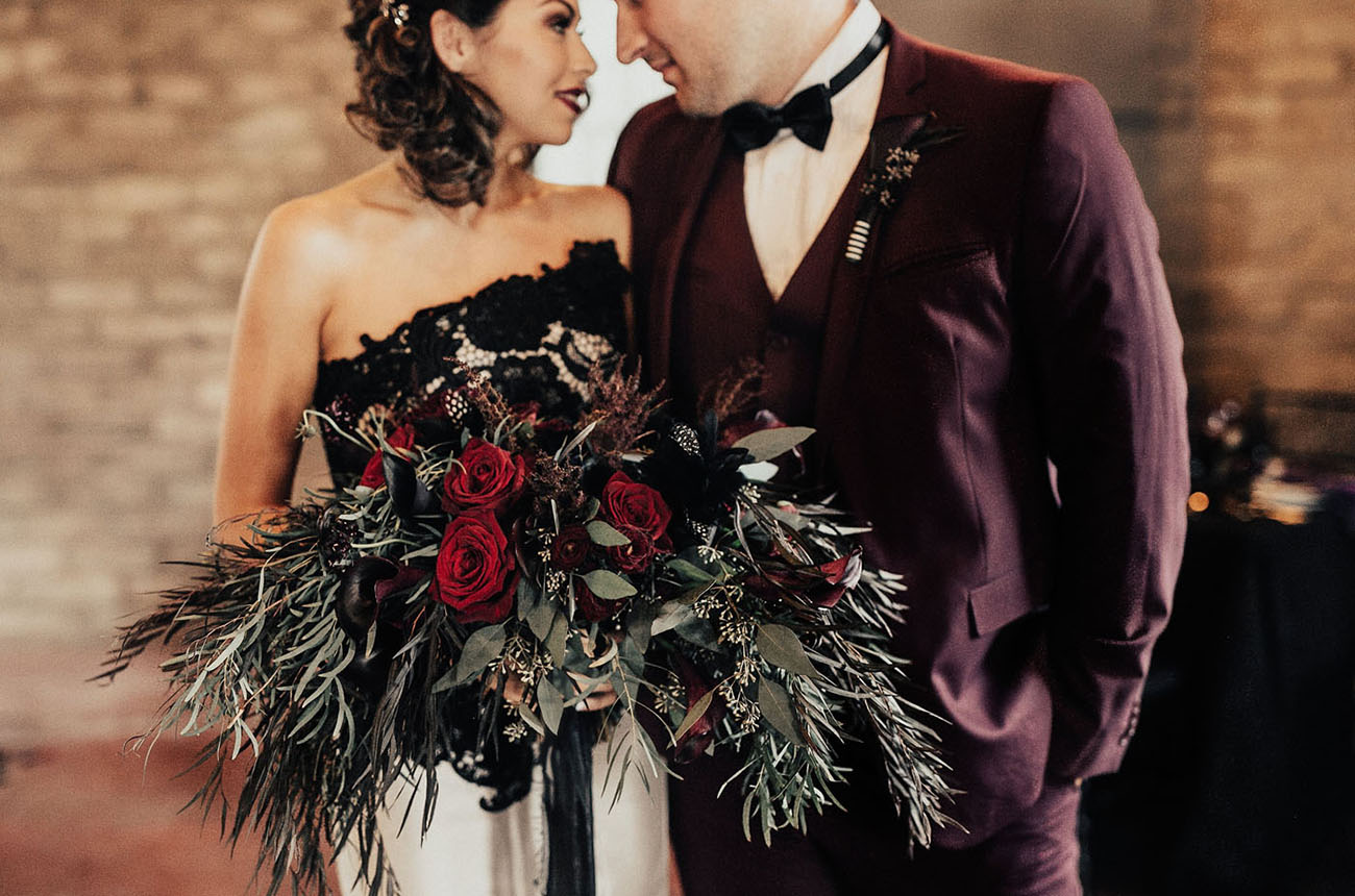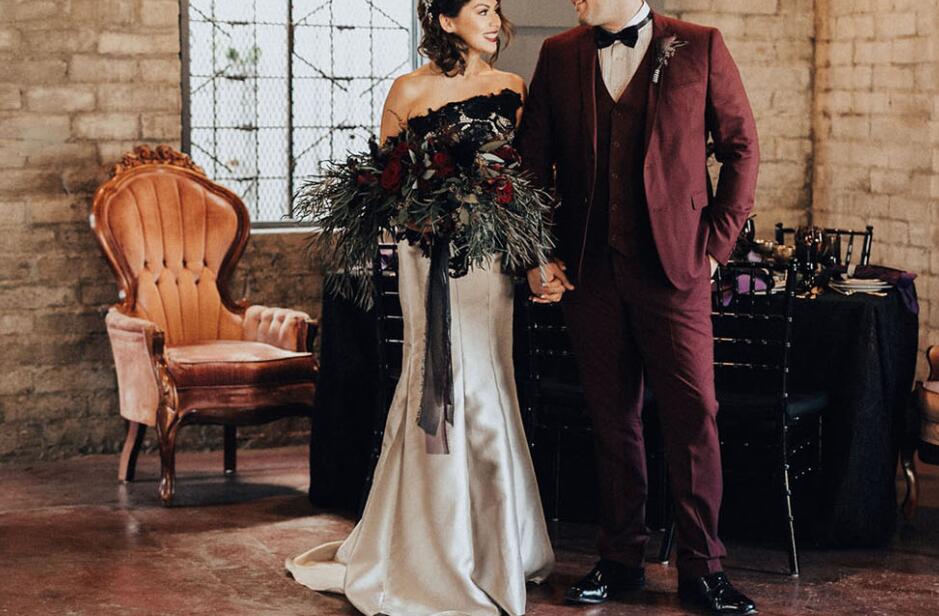 Glamous Mermaid Satin Black and White Gothic Wedding Dresses Sexy Lace Accents Bridal Gowns,578