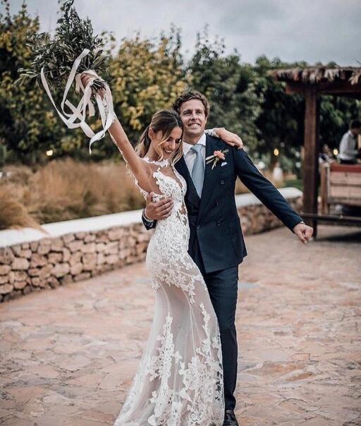 Sexy Beach Long Sleeves Mermaid Wedding Dresses Crew Neck Open Back Applique Lace Plus Size Bohemian Bridal Gowns,579